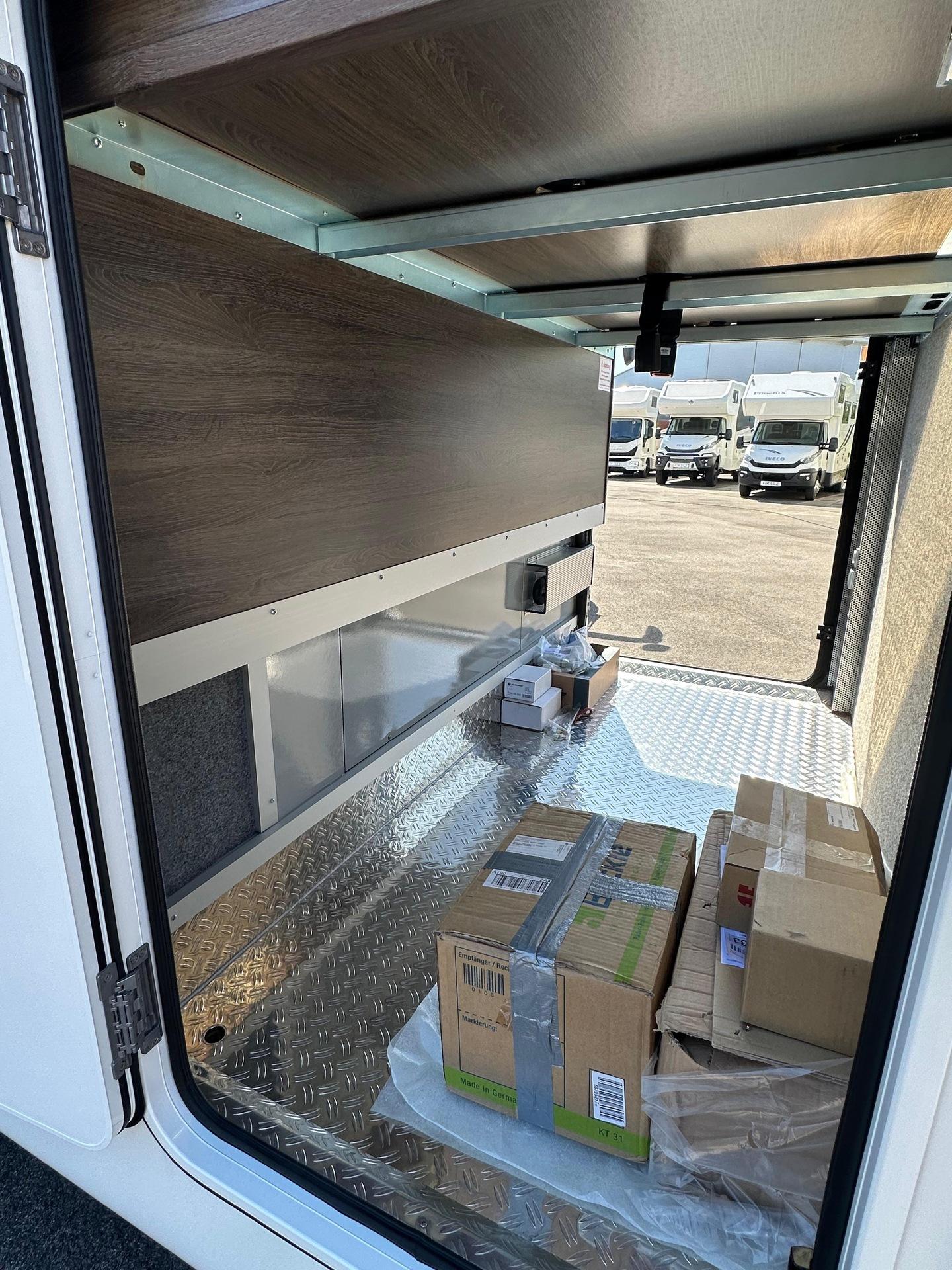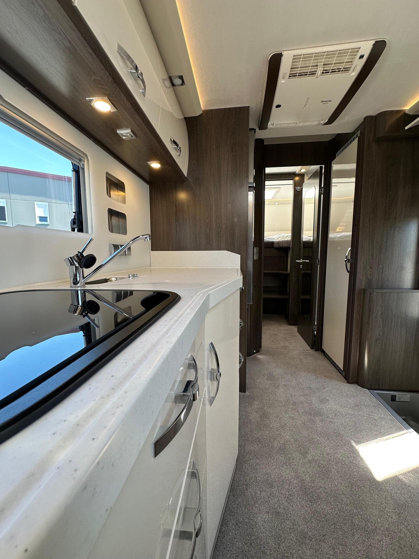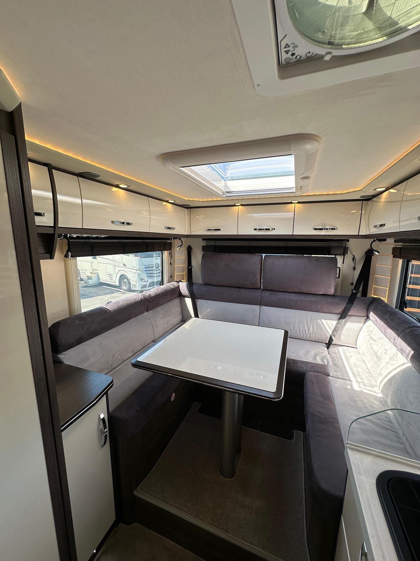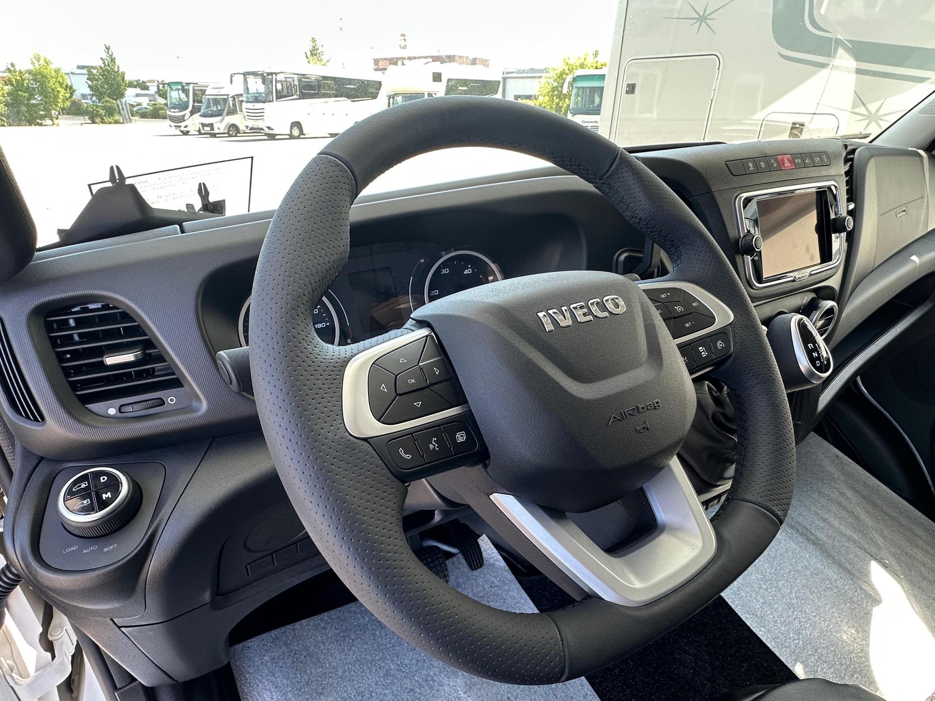 Fahrgestell: Iveco Daily 70 C 21 H/P für Alk. ReisemobileRadstand: 4.750 mm, 207, Euro VI eSonderausstattung:Stoßfänger vorne und hinten in Wagenfarbe[130960] Anhängerkupplung Iveco Daily Alkoven mit Kugelkopf/Dose 12 V/13pol., Zulässige Anhängelast je nach Modell und Zul. ZugGesGewicht bis 3.5 to[26056] Auflastung Iveco Daily von 6.000 kg um 500 kg auf ein zulassiges GG von 6.500 kg[26146] Chassis-Ausführung 72 C 18 anstelle 65 C 18[26203] Auflastung Iveco Daily von 7.200 kg um 290 kg auf ein zulässiges GG von 7.490kg, Anhängelast reduziert sich dadurch auf 3.000 kg[26070] Diesel Kraftstofftank 170 l für Iveco Daily (Tankanzeige abweichend)[20072] Differentialsperre[131246] Doppel-DIN DAB+ Radio Hi-Connect mit Navigationssystem, mit TWIN-Farb-Rückfahrkamera, Navigation für Europa (Europa, Türkei, Russland) inkl. Multifunktionstasten[26568] Fahrsicherheitspaket (Feststellbremse elektrisch, Notbremsassistent (AEBS), Abstandsregeltempomat (ACC) inkl. Geschwindigkeitsregelanlage, Aktiver Spurhalteassistent "Lane Assist", ESP mit Seitenwindassistent, Traktion plus mit Bergabfahrhilfe, aktives Reifendruckkontrolle, Multifunktions-Lederlenkrad)[296494] Lenkrad in Höhe und Neigung verstellbar[20063] Luftfederung für Hinterachse[26188] Motor mit 207 PS anstelle 176 PS[26497] Voll-LED-Scheinwerfer mit LED-Tagfahrlicht[26286] Wandlerautomatik-Getriebe Hi-Matic mit 8 Schaltstufen[26081] Retarder Telma für Iveco Daily[26559] 16 Zoll Leichtmetallräder mit Spurverbreiterung für Vorderachse mit 225/75 R75 16 Bereifung, Alu-Radzierblenden für Hinterachse mit 225/75 R16 Bereifung[26496] Fernlichtassistent "Light Assist"[26581] Distanzscheiben für 60/70 C Hitnerachse; je Seite 45mm[999] HEKI 3 über der Sitzgruppe längs verbaut[131184] Alkovenhöhung lang, ausschließlich für Fahrzeuge mit Rundsitzgruppe, ca 13 cm inkl. Dachreling, Achtung: Fahrzeughöhe verändert sich dadurch![120850] Außenmarkise 5,5 m mit eingebautem 230 V Motor und LED-Strip, Tuchfarbe Grau[131122] Garagentür 75 x 130 cm auf der Fahrerseite anstelle 65 x 65 cm (B x H)[130329] Seitz-Midi-HEKI Dachfenster anstelle Dachluke für Alkoven[150143] 2 Schürzenklappen zusätzlich[131295] Lackierung Schürzen und Stoßstange hinten in weiß[150211] Abwassertank Spülanschluß mittels Einfüllstutzen wie bei Frischwasser[130026] Außendusche[130171] Frischwasser-Tank (ca. 115l) zusätzlich inkl. Absperrhahn (Absperrhahn nicht möglich bei RSL-Modellen)[150137] Heizkreislauf im Bereich des Alkovens, umschaltbar mit Dreiwegeventil und Bypass[131140] Keramik-Toilette Tecma Silence Plus mit Bidet und Festtank (ca. 230l) (Achtung: Bitte ausschließlich Toilettenpapier und keine Papiertücher oder andere Papierarten verwenden!)[120156] Separate Entlüftung für Abwassertank über Dach[131217] Elektro-Powerbank (Iveco Daily) mit zusätzlicher 210 Ah Gelbatterie (= 2 x 210 Ah), mit Wechselrichter 12 V / 230 V Sinus Wechselspannung. Dauerleistung 3000 V A/2400 W und Fernbedienung, plus 10 zusätzliche Steckdosen (7 x 230 V, 3 x Doppel-USB)[130814] Dachklimaanlage Aventa Comfort Kälteleistung 2.400 Watt[130278] Kompressor-Kühlschrank 195 l einschl. sep. 44 l Tiefkühlfach anstelle Serienkühlschrank[130836] Dämmerlicht Frontbereich/Heckbereich/Hinterglasbeleuchtung (Eckleuchten)[131353] Schubladen Geschirrspüler unter Kühlschrank[130018] Elektrolüfter zusätzlich, mit Thermostat im Bad[131180] Möbelkorpus Dekor "Steineiche" in Kombination mit Fronten in hochglanz weiß oder Bergahorn hochglanz[131226] stylX luxury Marmor (= hell) für normale Modelle mit Rechteckdusche[131222] Fronten in hochglanz weiß[131157] Küchenrückwand Acrylglas hinterleucchtet, nur in kombination mit stylX luxury[120905] Anstelle der Schränke links und rechts am Alkoven auf jeder Seite 3 Schubkästen[999] Polstersatz Modell 7800 RSL, Denver 143 grau + Denver 144 anthrazit bicolor, oberer und unterer Wulst in Denver 144 anthrazit, Sitz- und Rückenfläche in Denver 143 grau[131155] Holzjalousie in der Sitzgruppe auf der Fahrerseite[131155] Holzjalousie in der Sitzgruppe auf der Beifahrerseite[131155] Holzjalousie am Heckfenster[150683] Seriendekor für Midi-/MaXi-Top-Alkoven Modell 2025