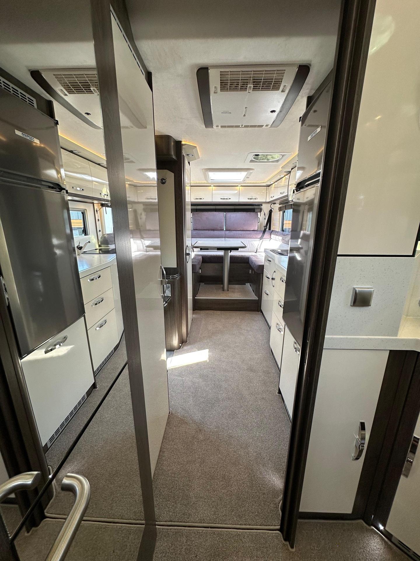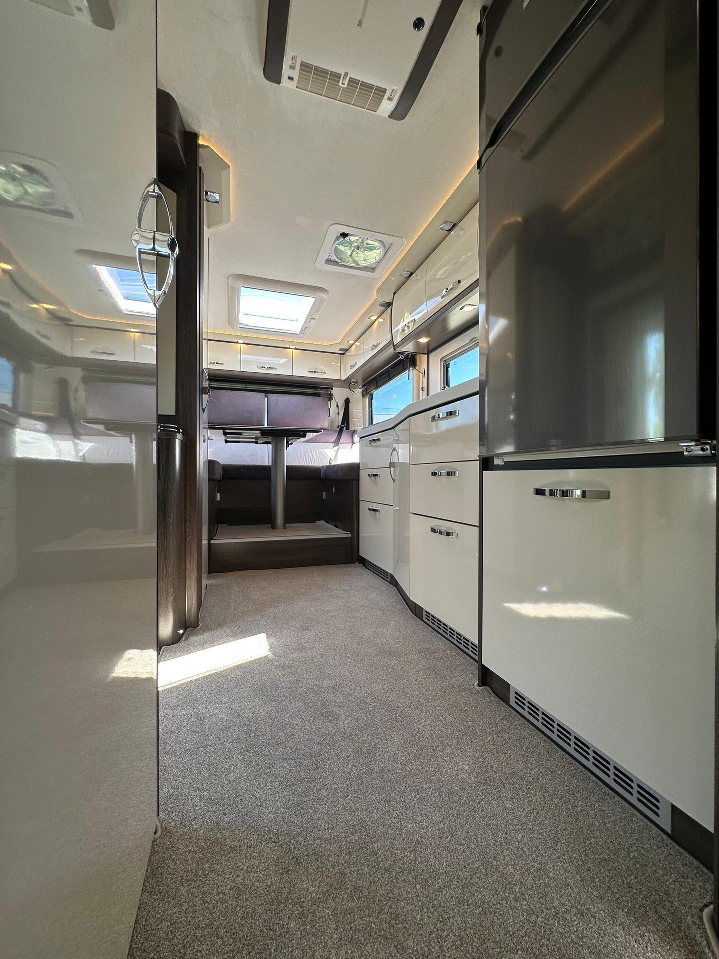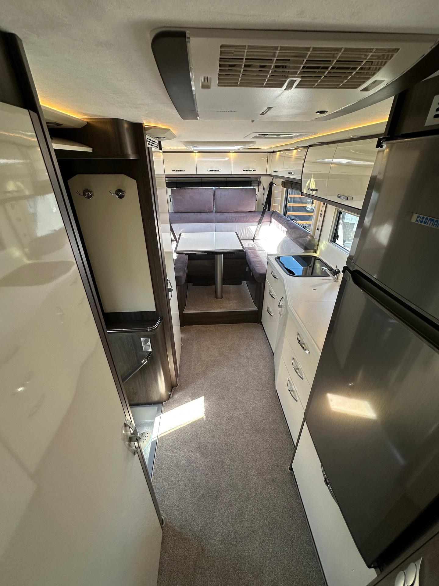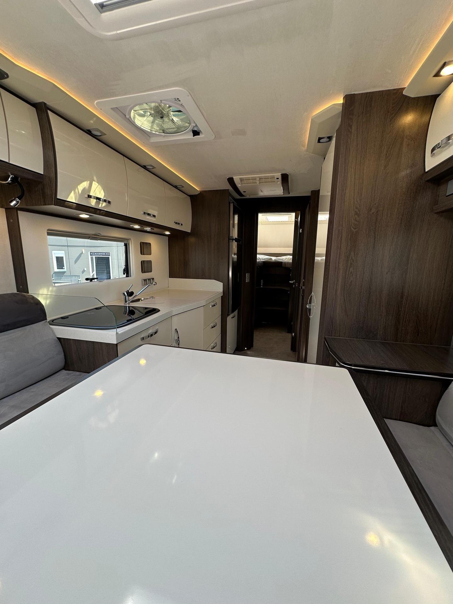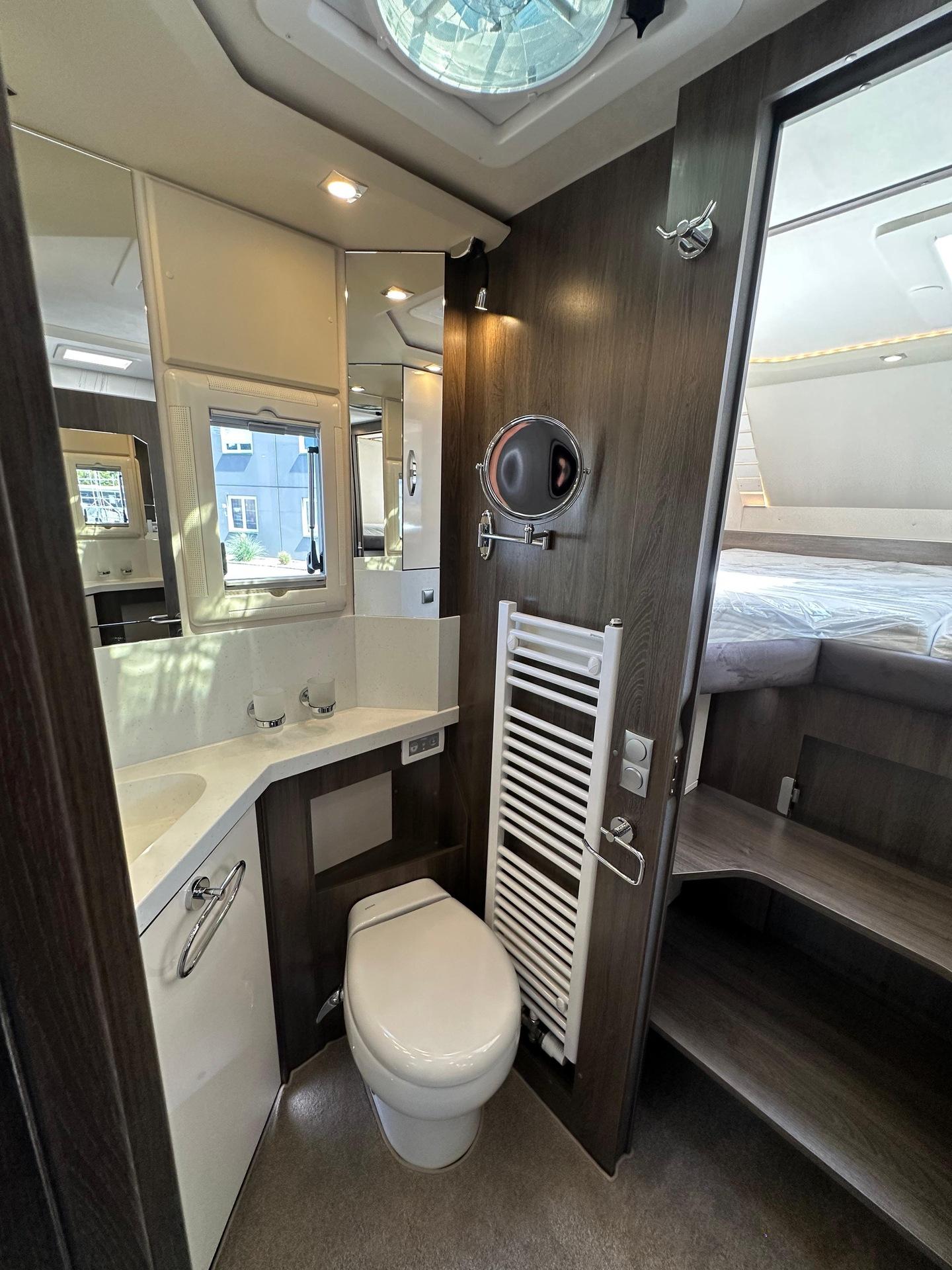 Fahrgestell: Iveco Daily 70 C 21 H/P für Alk. ReisemobileRadstand: 4.750 mm, 207, Euro VI eSonderausstattung:Stoßfänger vorne und hinten in Wagenfarbe[130960] Anhängerkupplung Iveco Daily Alkoven mit Kugelkopf/Dose 12 V/13pol., Zulässige Anhängelast je nach Modell und Zul. ZugGesGewicht bis 3.5 to[26056] Auflastung Iveco Daily von 6.000 kg um 500 kg auf ein zulassiges GG von 6.500 kg[26146] Chassis-Ausführung 72 C 18 anstelle 65 C 18[26203] Auflastung Iveco Daily von 7.200 kg um 290 kg auf ein zulässiges GG von 7.490kg, Anhängelast reduziert sich dadurch auf 3.000 kg[26070] Diesel Kraftstofftank 170 l für Iveco Daily (Tankanzeige abweichend)[20072] Differentialsperre[131246] Doppel-DIN DAB+ Radio Hi-Connect mit Navigationssystem, mit TWIN-Farb-Rückfahrkamera, Navigation für Europa (Europa, Türkei, Russland) inkl. Multifunktionstasten[26568] Fahrsicherheitspaket (Feststellbremse elektrisch, Notbremsassistent (AEBS), Abstandsregeltempomat (ACC) inkl. Geschwindigkeitsregelanlage, Aktiver Spurhalteassistent "Lane Assist", ESP mit Seitenwindassistent, Traktion plus mit Bergabfahrhilfe, aktives Reifendruckkontrolle, Multifunktions-Lederlenkrad)[296494] Lenkrad in Höhe und Neigung verstellbar[20063] Luftfederung für Hinterachse[26188] Motor mit 207 PS anstelle 176 PS[26497] Voll-LED-Scheinwerfer mit LED-Tagfahrlicht[26286] Wandlerautomatik-Getriebe Hi-Matic mit 8 Schaltstufen[26081] Retarder Telma für Iveco Daily[26559] 16 Zoll Leichtmetallräder mit Spurverbreiterung für Vorderachse mit 225/75 R75 16 Bereifung, Alu-Radzierblenden für Hinterachse mit 225/75 R16 Bereifung[26496] Fernlichtassistent "Light Assist"[26581] Distanzscheiben für 60/70 C Hitnerachse; je Seite 45mm[999] HEKI 3 über der Sitzgruppe längs verbaut[131184] Alkovenhöhung lang, ausschließlich für Fahrzeuge mit Rundsitzgruppe, ca 13 cm inkl. Dachreling, Achtung: Fahrzeughöhe verändert sich dadurch![120850] Außenmarkise 5,5 m mit eingebautem 230 V Motor und LED-Strip, Tuchfarbe Grau[131122] Garagentür 75 x 130 cm auf der Fahrerseite anstelle 65 x 65 cm (B x H)[130329] Seitz-Midi-HEKI Dachfenster anstelle Dachluke für Alkoven[150143] 2 Schürzenklappen zusätzlich[131295] Lackierung Schürzen und Stoßstange hinten in weiß[150211] Abwassertank Spülanschluß mittels Einfüllstutzen wie bei Frischwasser[130026] Außendusche[130171] Frischwasser-Tank (ca. 115l) zusätzlich inkl. Absperrhahn (Absperrhahn nicht möglich bei RSL-Modellen)[150137] Heizkreislauf im Bereich des Alkovens, umschaltbar mit Dreiwegeventil und Bypass[131140] Keramik-Toilette Tecma Silence Plus mit Bidet und Festtank (ca. 230l) (Achtung: Bitte ausschließlich Toilettenpapier und keine Papiertücher oder andere Papierarten verwenden!)[120156] Separate Entlüftung für Abwassertank über Dach[131217] Elektro-Powerbank (Iveco Daily) mit zusätzlicher 210 Ah Gelbatterie (= 2 x 210 Ah), mit Wechselrichter 12 V / 230 V Sinus Wechselspannung. Dauerleistung 3000 V A/2400 W und Fernbedienung, plus 10 zusätzliche Steckdosen (7 x 230 V, 3 x Doppel-USB)[130814] Dachklimaanlage Aventa Comfort Kälteleistung 2.400 Watt[130278] Kompressor-Kühlschrank 195 l einschl. sep. 44 l Tiefkühlfach anstelle Serienkühlschrank[130836] Dämmerlicht Frontbereich/Heckbereich/Hinterglasbeleuchtung (Eckleuchten)[131353] Schubladen Geschirrspüler unter Kühlschrank[130018] Elektrolüfter zusätzlich, mit Thermostat im Bad[131180] Möbelkorpus Dekor "Steineiche" in Kombination mit Fronten in hochglanz weiß oder Bergahorn hochglanz[131226] stylX luxury Marmor (= hell) für normale Modelle mit Rechteckdusche[131222] Fronten in hochglanz weiß[131157] Küchenrückwand Acrylglas hinterleucchtet, nur in kombination mit stylX luxury[120905] Anstelle der Schränke links und rechts am Alkoven auf jeder Seite 3 Schubkästen[999] Polstersatz Modell 7800 RSL, Denver 143 grau + Denver 144 anthrazit bicolor, oberer und unterer Wulst in Denver 144 anthrazit, Sitz- und Rückenfläche in Denver 143 grau[131155] Holzjalousie in der Sitzgruppe auf der Fahrerseite[131155] Holzjalousie in der Sitzgruppe auf der Beifahrerseite[131155] Holzjalousie am Heckfenster[150683] Seriendekor für Midi-/MaXi-Top-Alkoven Modell 2025