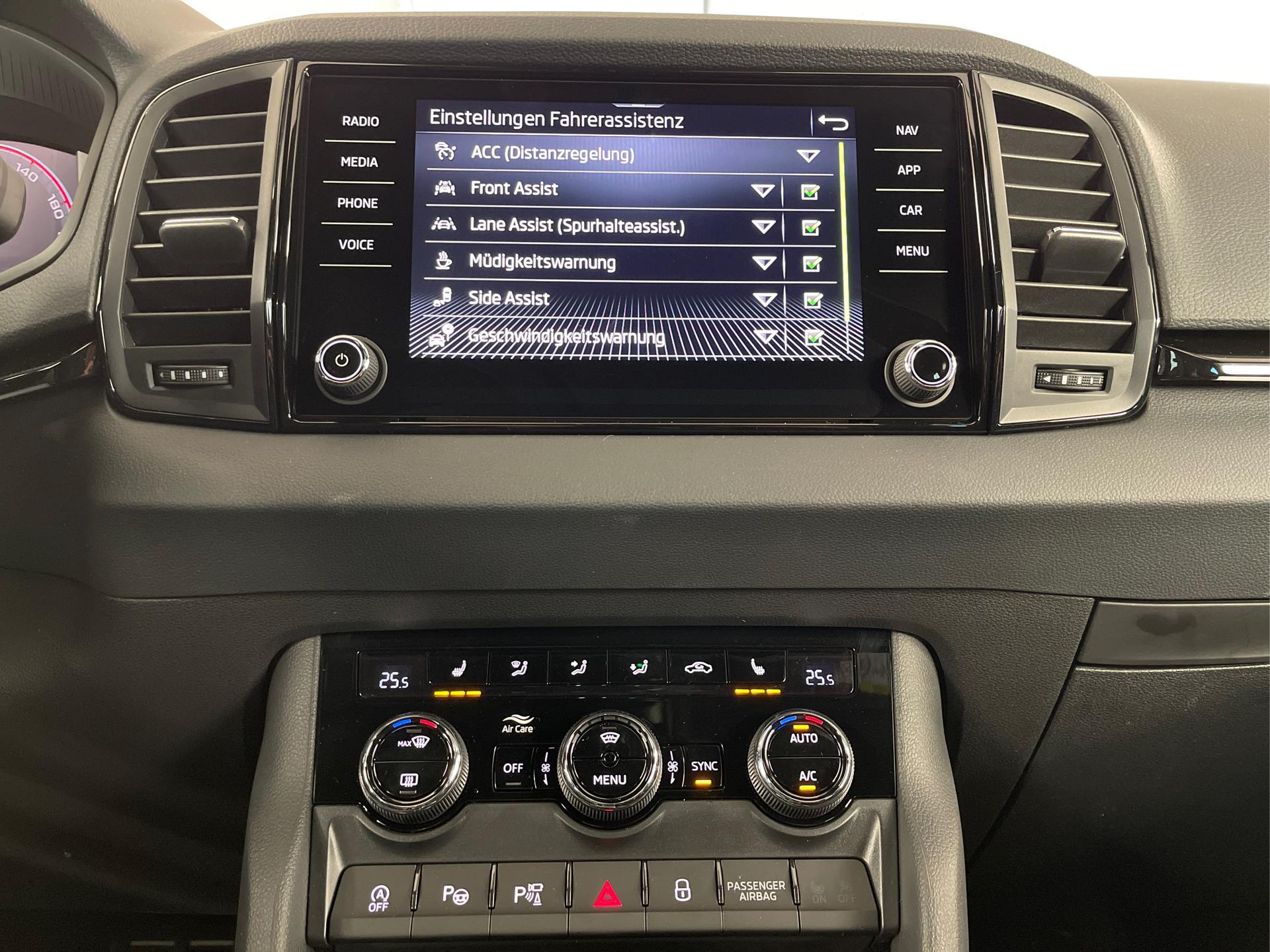• Fahrassistenz Plus (Spurwechselassistent (Side Assist), Adaptiver Abstandsassistent ACC (Geschwindigkeitsregelanlage inkl. Geschwindigkeitsbegrenzung), Verkehrszeichenerkennung, Sicherheitsinnenspiegel automatisch abblendend, Travel Assist (pACC, Adaptiver Spurhalteassistent, Notfallassistent, Stauassistent))