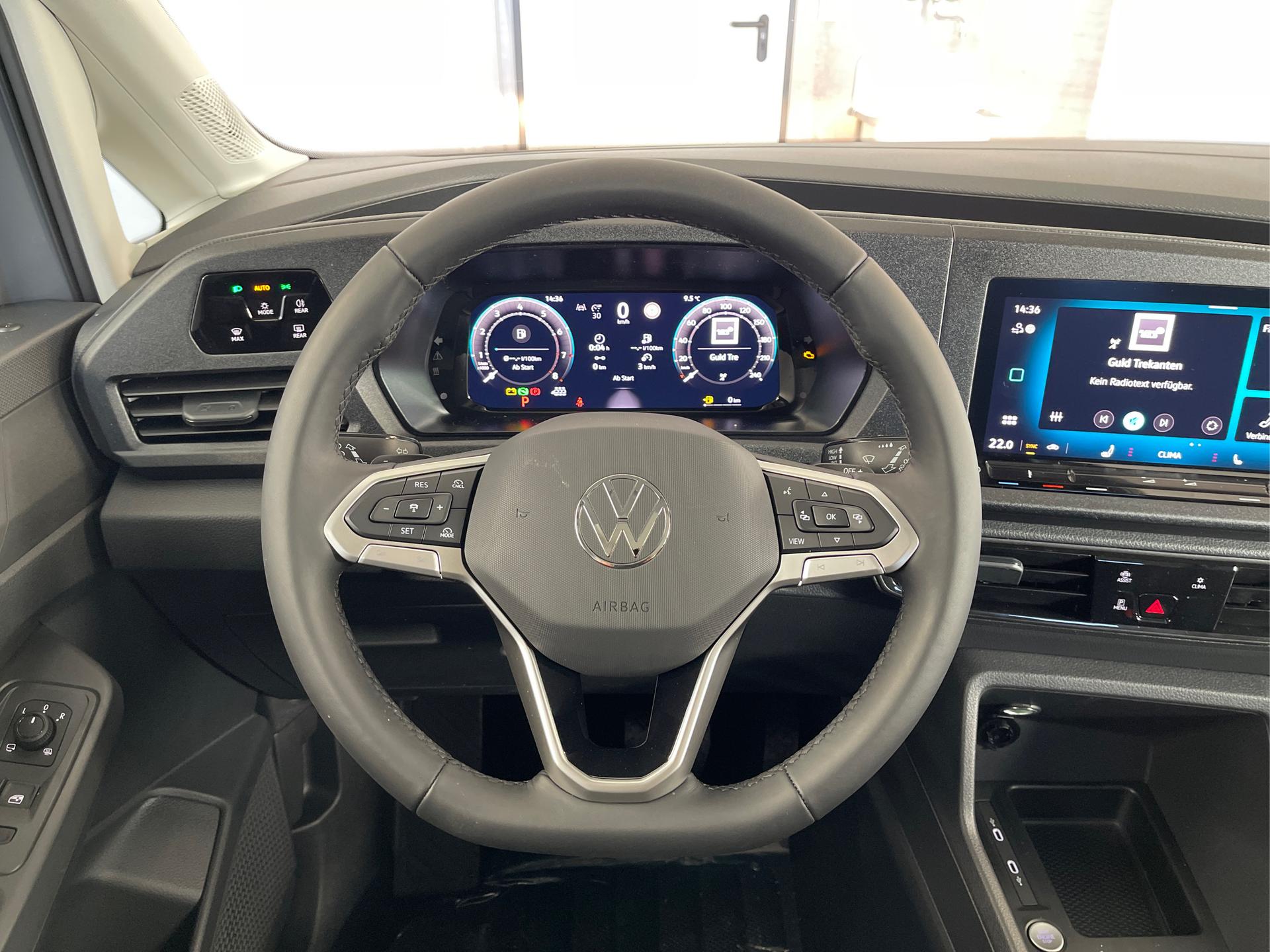 • 16 Zoll Stahlräder, Reifen 205/60 R16 96H, Heckscheibe beheizbar, Wärmeschutzverglasung, Außenspiegel elektrisch einstell- und beheizbar, Schiebetür links und rechts im Fahrgastraum, Tire-Mobility-Kit, Scheibenbremsen vorne, Airbag für Fahrer und Beifahrer, Beifahrerairbag-Deaktivierung, Seitenairbag vorn, Kopfairbag vorn und hinten, Tagfahrlicht, Multifunktions-Lederlenkrad, Front Assist inkl. City-Notbremsfunktion, Fußgängererkennung, Radfahrererkennung, Notrufsystem eCall, Servolenkung, Seitenairbag vorn, Kopfairbag vorn, Kopfairbag für die äußeren Rücksitze, Centralairbag vorn, Dreipunkt-Sicherheitsgurte, Scheibenbremsen hinten, Make-up-Spiegel auf der Beifahrer-Sonnenblende, Wegfahrsperre elektronisch, Ausweichassistent und Abbiegeassistent, Rücksitzreihe umklappbar, Isofix Beifahrersitz, Fahrersitz höhenverstellbar, Getränkehalter, Ablagefach im Dach, Teppichbodenbelag im Fahrerhaus und Fahrgastraum, Gepäckraumabdeckung, 12 Volt Steckdose, Zentralverriegelung mit Funkfernbedienung, 6 Lautsprecher, Heckscheiben Wisch-Waschanlage, Digital Cockpit inkl. Bordcomputer (Farbdisplay), Digitaler Radioempfang DAB+, Reifendruckkontrolle, USB-C Schnittstelle, Freisprecheinrichtung Bluetooth, Radio "Composition" (Touchscreen), Waschwasserstandanzeige, Start-Stopp-Anlage, Verkehrszeichenerkennung, Scheibenwischer-Intervallschaltung, ABS, ASR, ESC, Startknopf